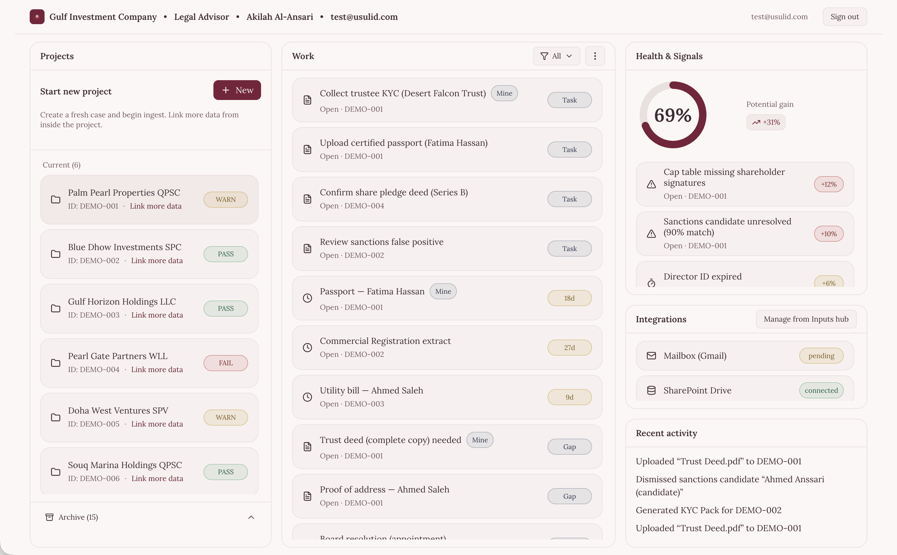 Usulid ingests messy files and emails, maps ownership all the way to individuals, screens sanctions/PEP, and exports regulator-friendly UBO & KYC packs with a clear audit trail.